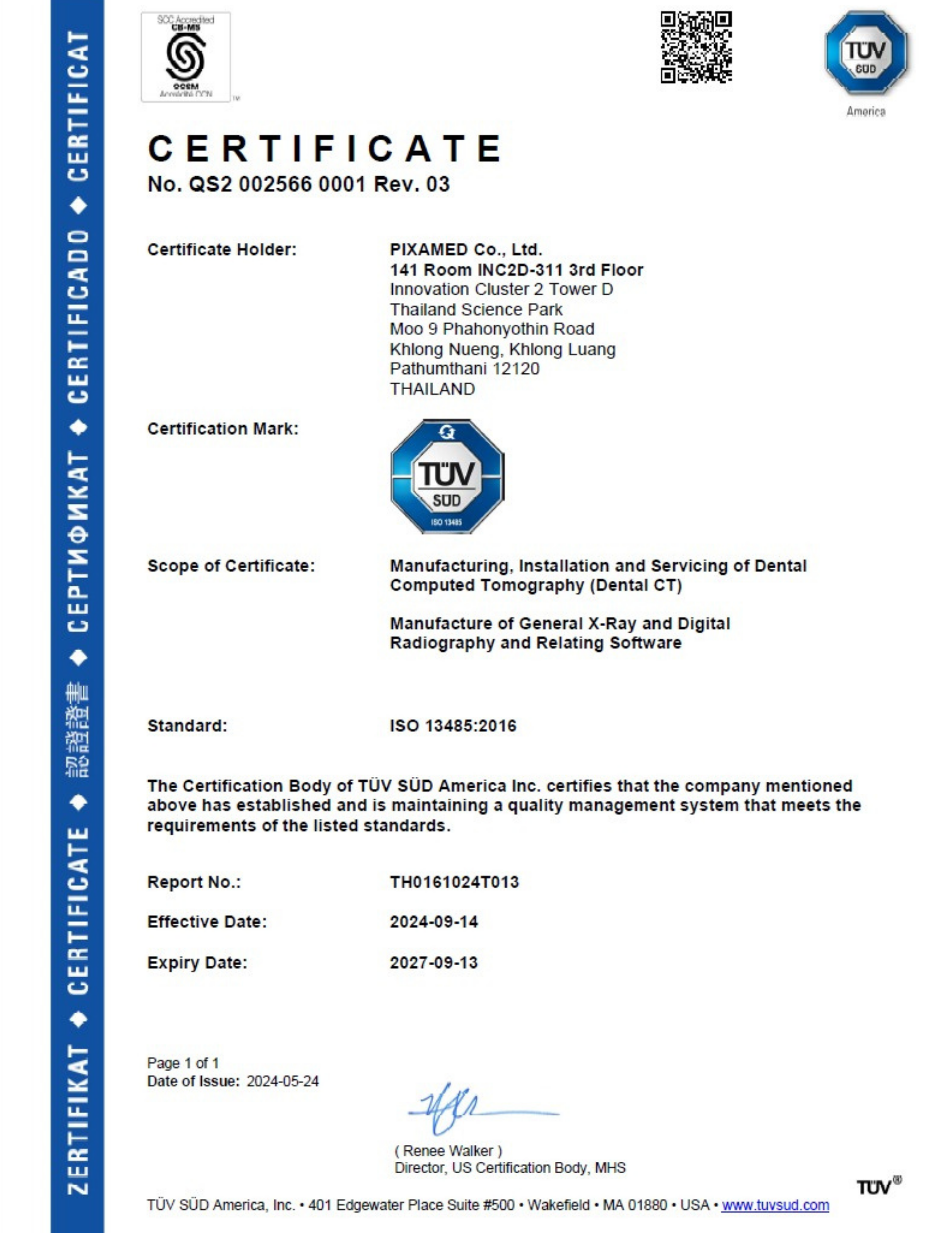 ปี 2561 บริษัทได้ผ่านการรับรองระบบการจัดการคุณภาพ ISO 13485 ที่ออกโดย TÜV SÜD บริษัทมุ่งหวังที่จะมอบประสบการณ์ที่ดีที่สุดให้กับลูกค้าและราคาไม่แพง เพื่อบริการด้านการดูแลสุขภาพ